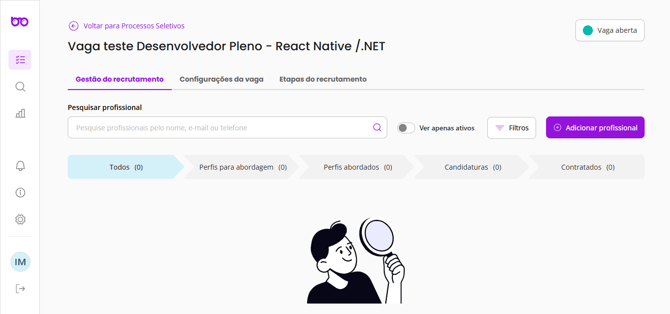 Gestão do Recrutamento, Configurações da Vaga e Etapas do Recrutamento.